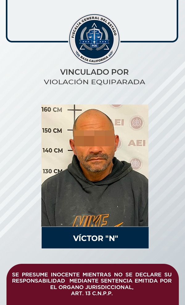 MEXICALI, B.C. La Fiscalía General del Estado, a través de la Fiscalía Especializada en Delitos Contra Mujeres por Razón de Género, presentó los elementos de prueba suficientes para lograr el inicio de un proceso penal, en contra de un imputado por el delito de violación equiparada.