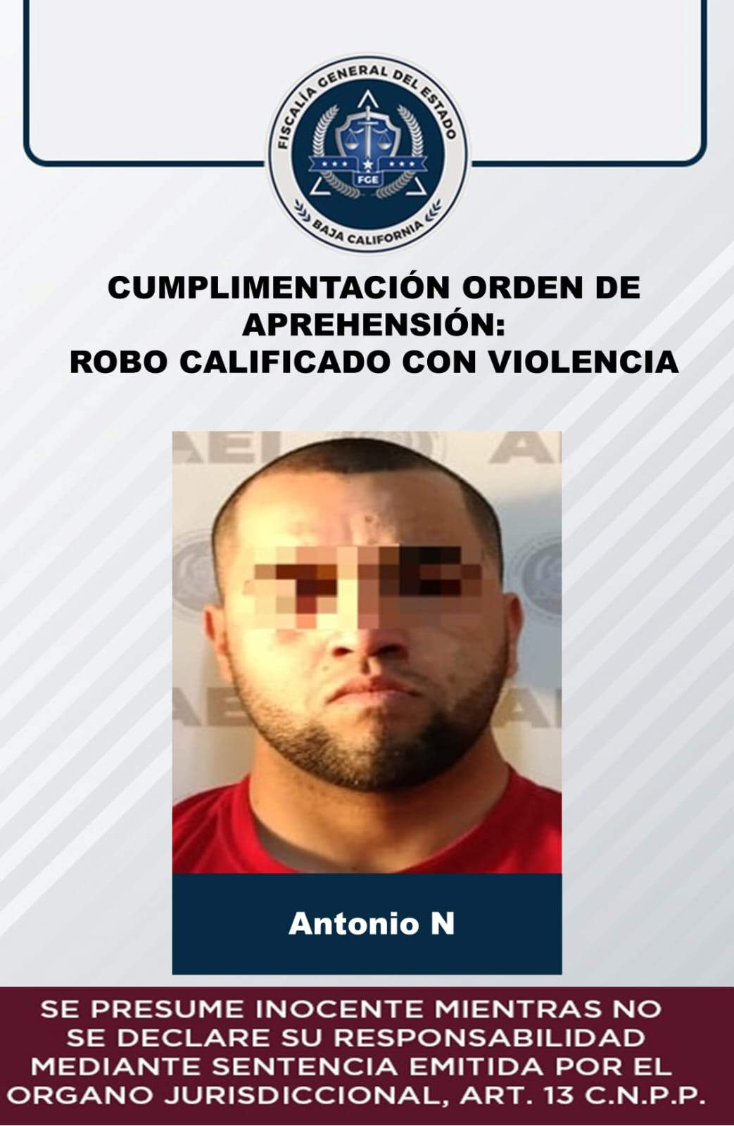 Tras cumplimentar la orden de captura el 7 de febrero de 2023, en Residencial San Marino, el detenido Antonio “N”, fue trasladado e ingresado al Centro de Detención Provisional en Ensenada, Baja California, donde se encuentra a disposición del Juez de Control.