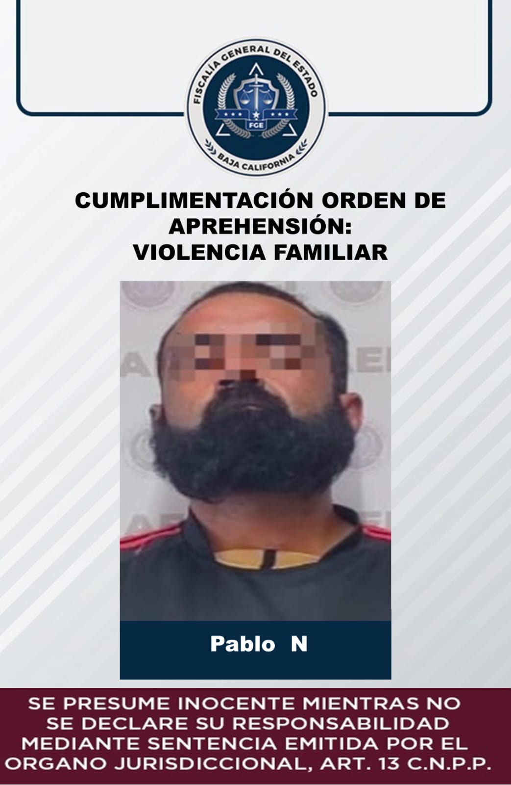 ENSENADA, B.C. Agentes de la Fiscalía General del Estado (FGE), cumplimentaron un mandamiento judicial que pesaba en contra de Pablo ”N”, por el delito de violencia familiar, denunciado en el 2020.