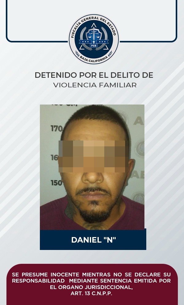 MEXICALI, B.C. La Fiscalía General del Estado (FGE), a través de la Unidad de Investigación con detenidos Oriente, logró la vinculación a proceso de Daniel Alejandro "N”, imputado por el delito de violencia familiar.