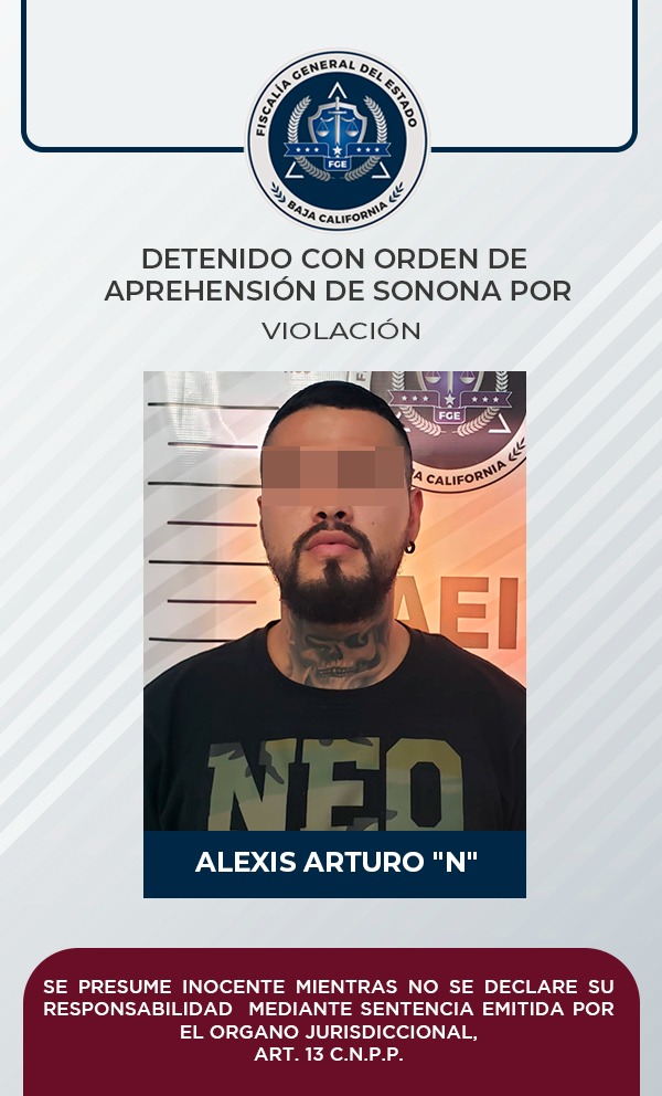 MEXICALI, B.C. Elementos de la Fiscalía General del Estado (FGE), cumplimentaron orden de aprehensión en contra de Alexis Arturo “N”, quien era buscado por las autoridades sonorenses por estar relacionado en una agresión sexual.