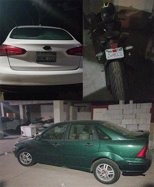En el lugar, también se encontró un Kia, línea Forte, modelo 2018, color blanco, así como un Un Ford, Focus, modelo 2001, color verde con placas de circulación del Estado de California, 4FSJ067.