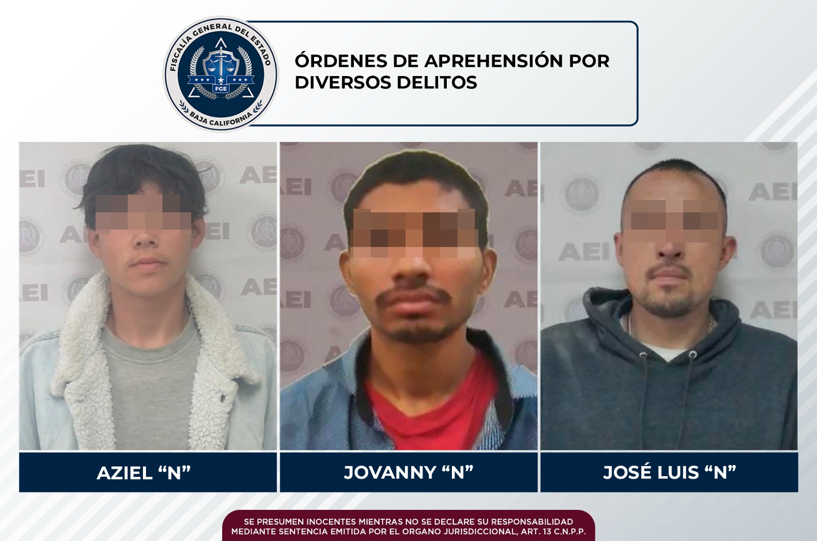 TECATE, B.C. Labores de investigación por parte de agentes de la Fiscalía General del Estado (FGE), tuvo como resultado la cumplimentación de tres órdenes de aprehensión, en hechos distintos, en contra de sujetos que son investigados por delitos de lesiones contra menores, violencia familiar, lesiones y daño en propiedad ajena.