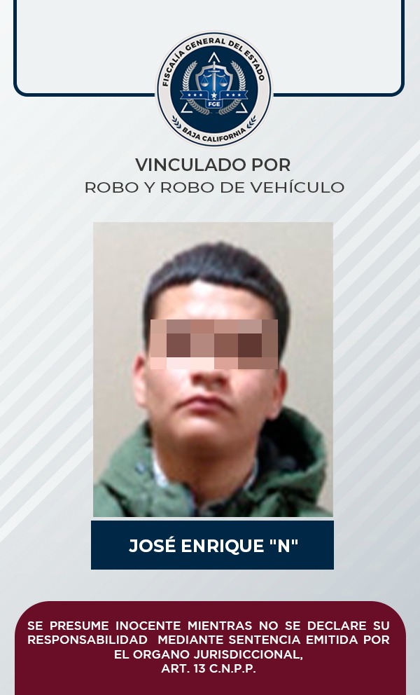 MEXICALI, B.C. La Fiscalía Regional de Mexicali a través de la Unidad de Investigación de Robo de Vehículos, obtuvo con base a los elementos de prueba presentados, la vinculación de un imputado por los delitos de robo calificado cometido por dos o más personas y robo de vehículo.