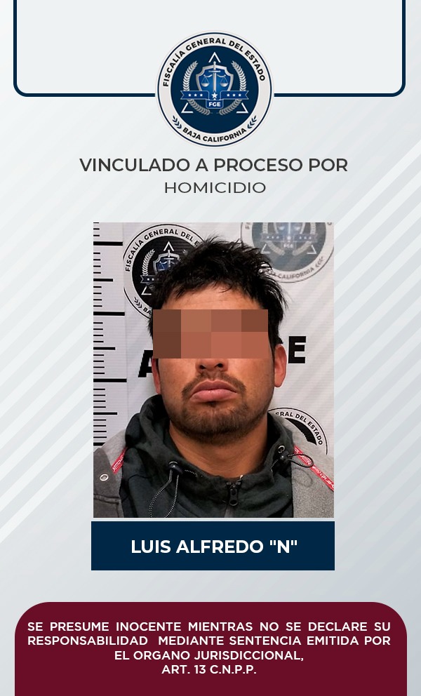 TIJUANA, B.C. Mediante pruebas aportadas por el agente del Ministerio Público de la Fiscalía General del Estado, un Juez de Control determinó vincular a proceso, con medida cautelar de prisión preventiva a Luis Alfredo "N", alias “El Taquero”, por la posible comisión del delito de homicidio consumado.
