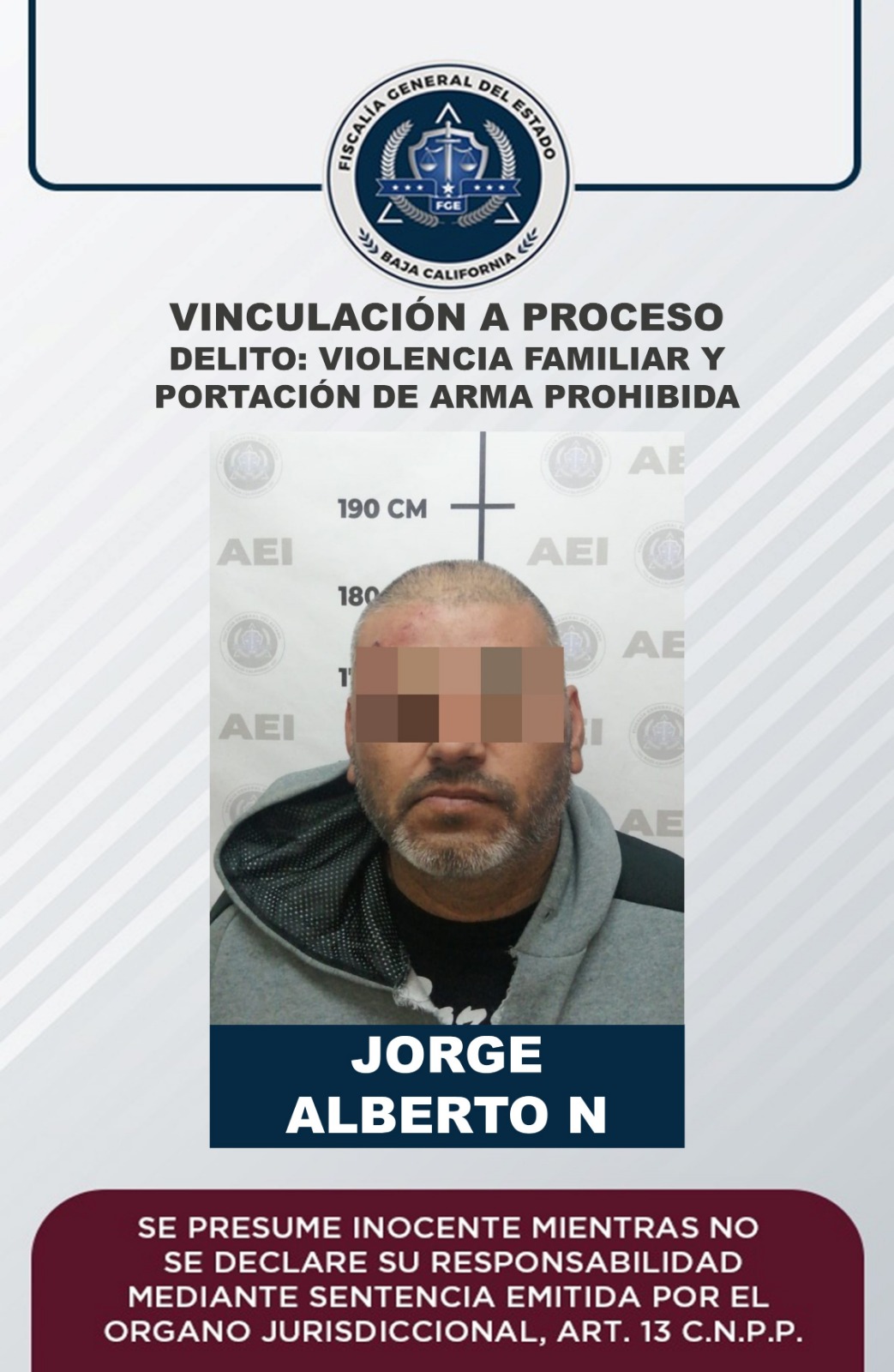 ENSENADA, B.C. Por los delitos de violencia familiar y portación de arma prohibida, la Fiscalía Regional de Ensenada obtuvo la vinculación a proceso del hombre detenido el 14 de febrero del año en curso en el fraccionamiento El Roble.