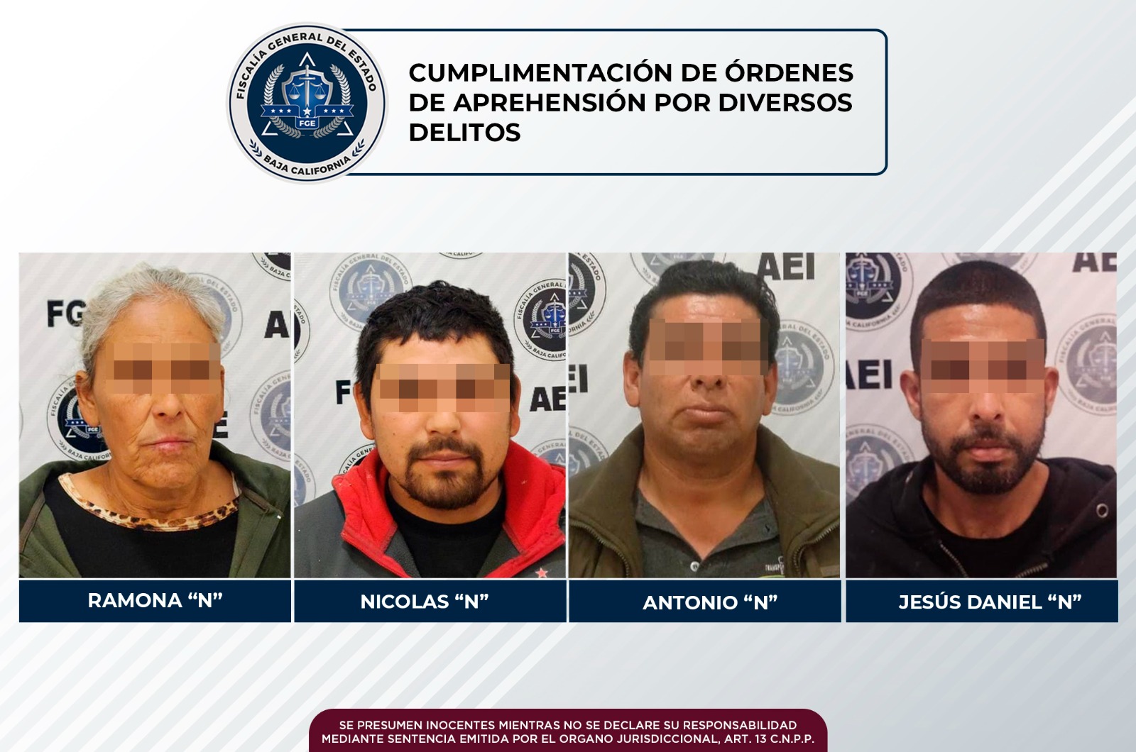TIJUANA, B.C. Tras labor desarrollada en gabinete y campo, elementos de la Agencia Estatal de Investigación de la Fiscalía General del Estado, dieron cumplimiento a mandamientos judiciales girados por jueces de control, por diversos delitos.