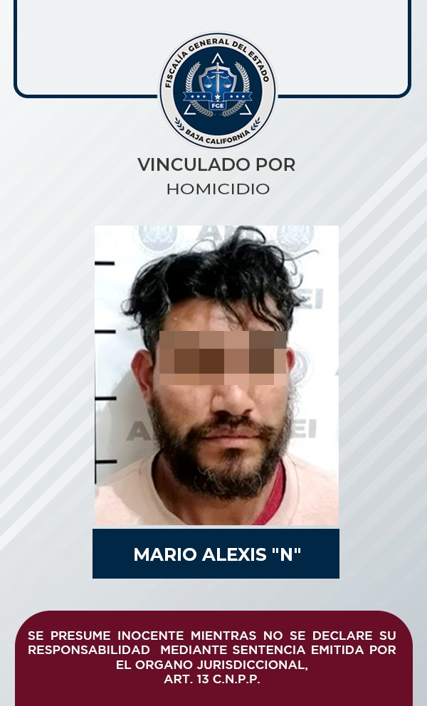 MEXICALI, B.C. La Fiscalía General del Estado (FGE) A través de la Fiscalía Especializada en investigación de Delitos contra la Vida, logró con base a los elementos presentados, la vinculación a proceso penal de un hombre identificado como Mario Alexis “N”, acusado del delito de homicidio calificado.