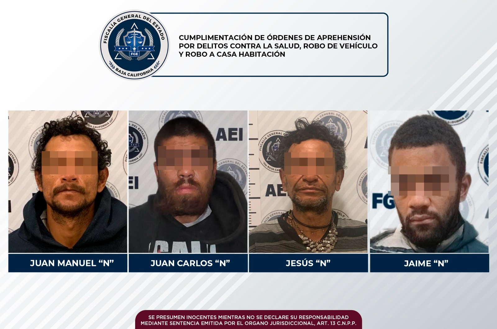 TIJUANA, B.C. derivado de acciones efectuadas en gabinete y campo por elementos de la Agencia Estatal de Investigación de la Fiscalía General del Estado, fue posible la cumplimentación de órdenes de aprehensión por delitos contra la salud, robo a casa habitación y robo de vehículo.
