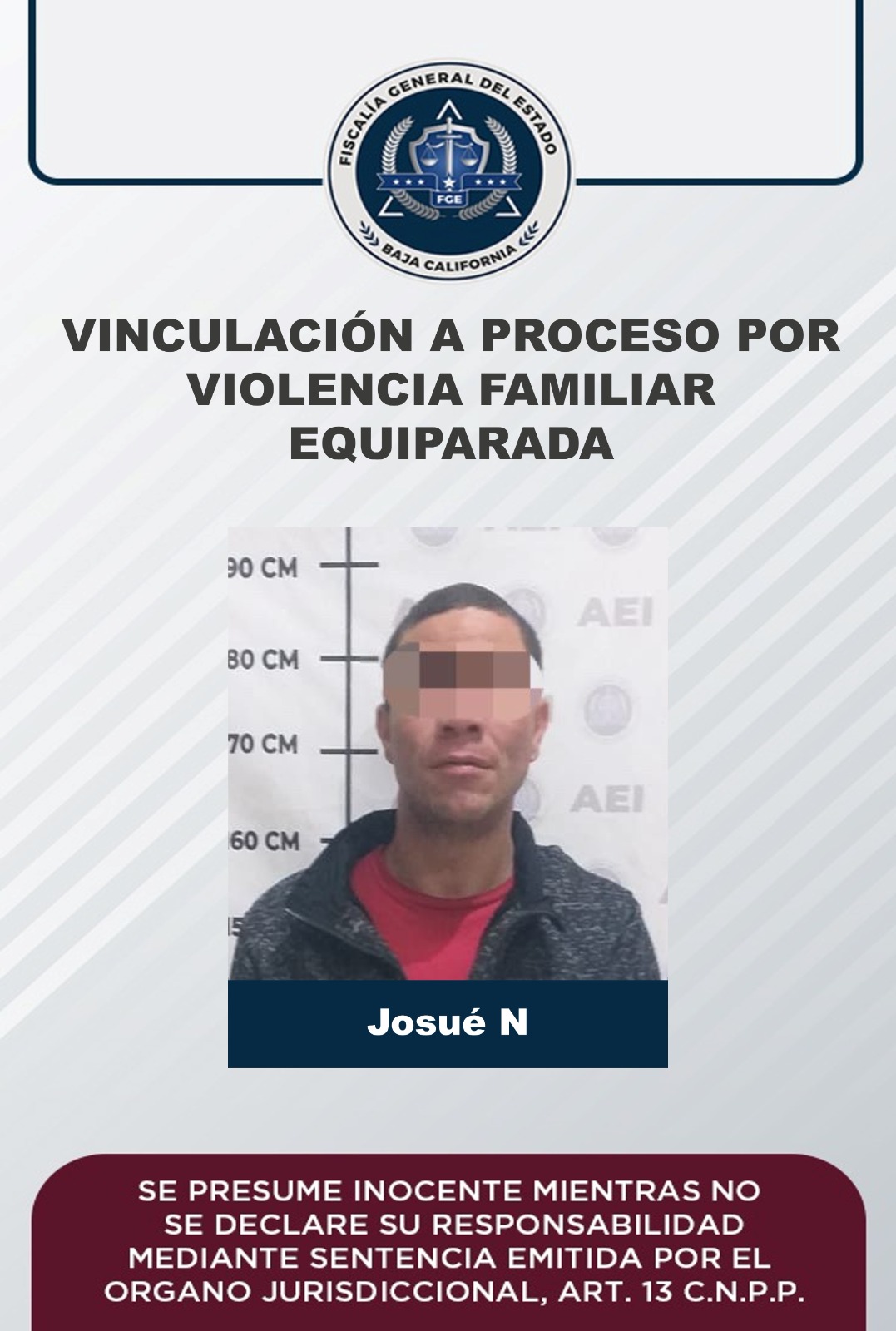 MEXICALI, B.C. La Fiscalía Regional de Mexicali, a través del trabajo realizado por la Unidad de Investigación de Delitos con Detenidos Poniente, logró como resultado de la integración de la carpeta de investigación, la vinculación a proceso de Josué “N”, alias “El Pitufo”, por el delito de violencia familiar equiparada.