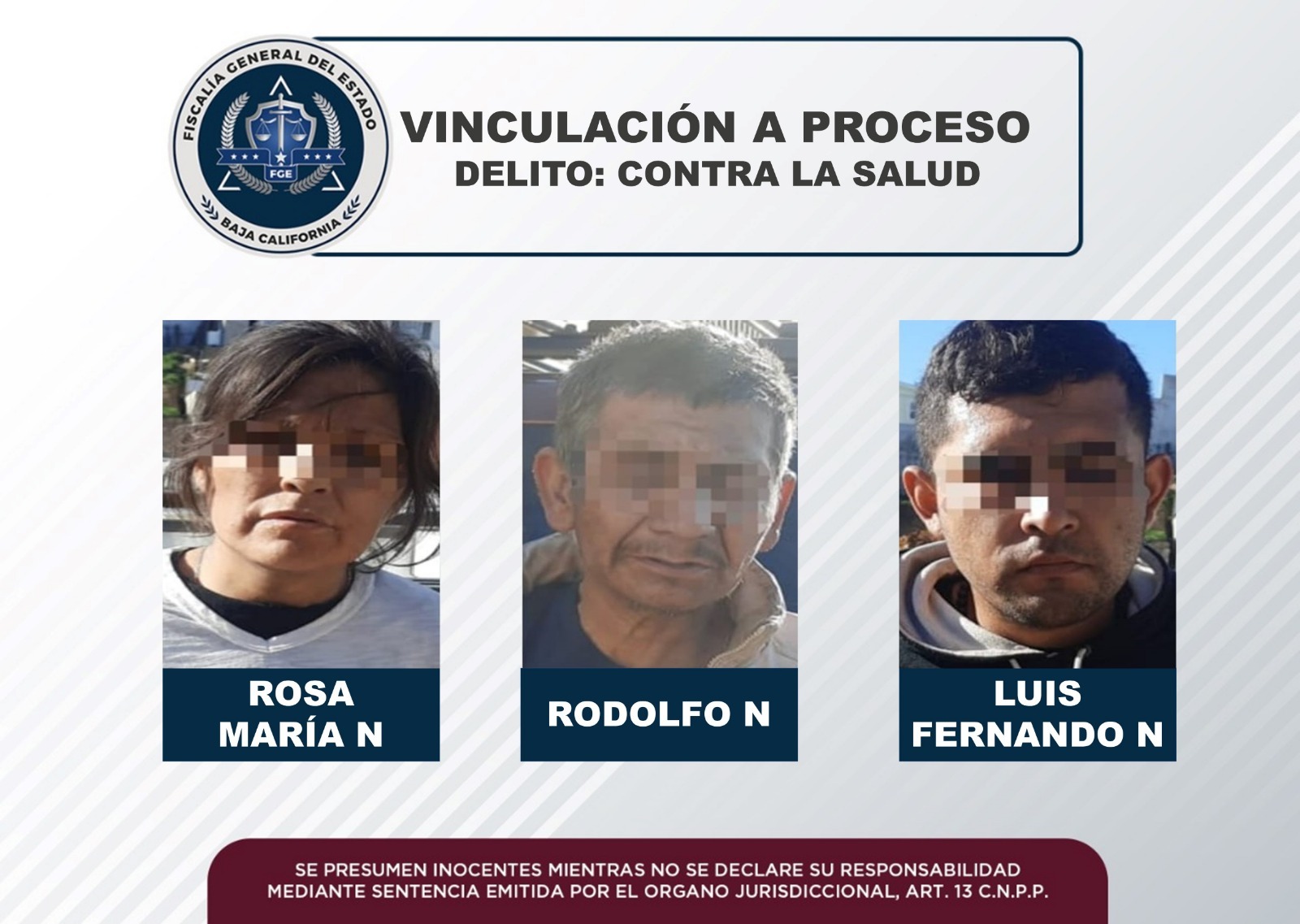 Por medio de los datos de prueba expuestos por el Ministerio Público perteneciente a la Fiscalía Especializada en Combate al Narcomenudeo, el Juez de Control procedió en contra de los imputados Rosa María “N”, de 37 años de edad, Rodolfo “N”, de 46 y Luis Fernando “N”, de 27, por delitos contra la salud.