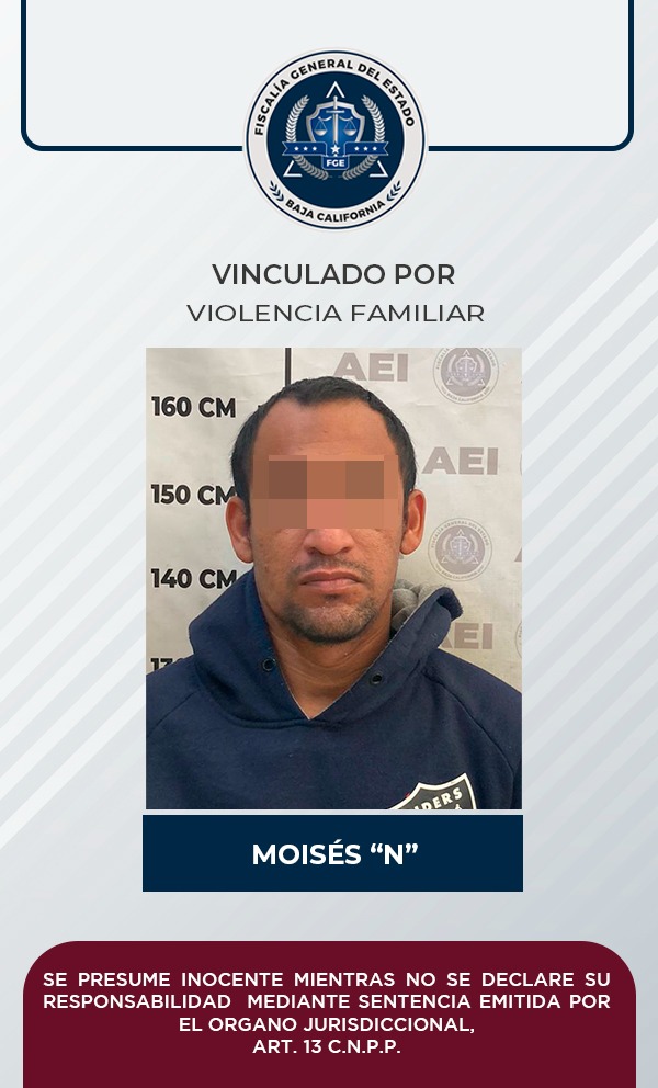 MEXICALI, B.C. Un hombre imputado por el delito de violencia familiar, quedó en prisión preventiva como resultado de los elementos de prueba presentados por la Fiscalía General del Estado (FGE) a través de una Unidad de Investigación con Detenidos Poniente.