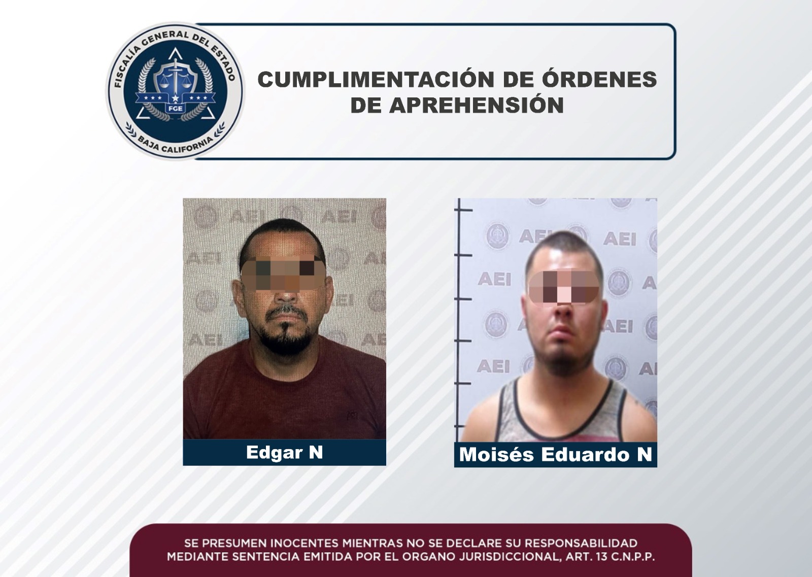 MEXICALI, B.C. Agentes estatales de investigación adscritos a la Fiscalía Regional de Mexicali, cumplimentaron orden de aprehensión en contra de dos individuos por presuntamente haber cometido el delito de robo en diversas modalidades.
