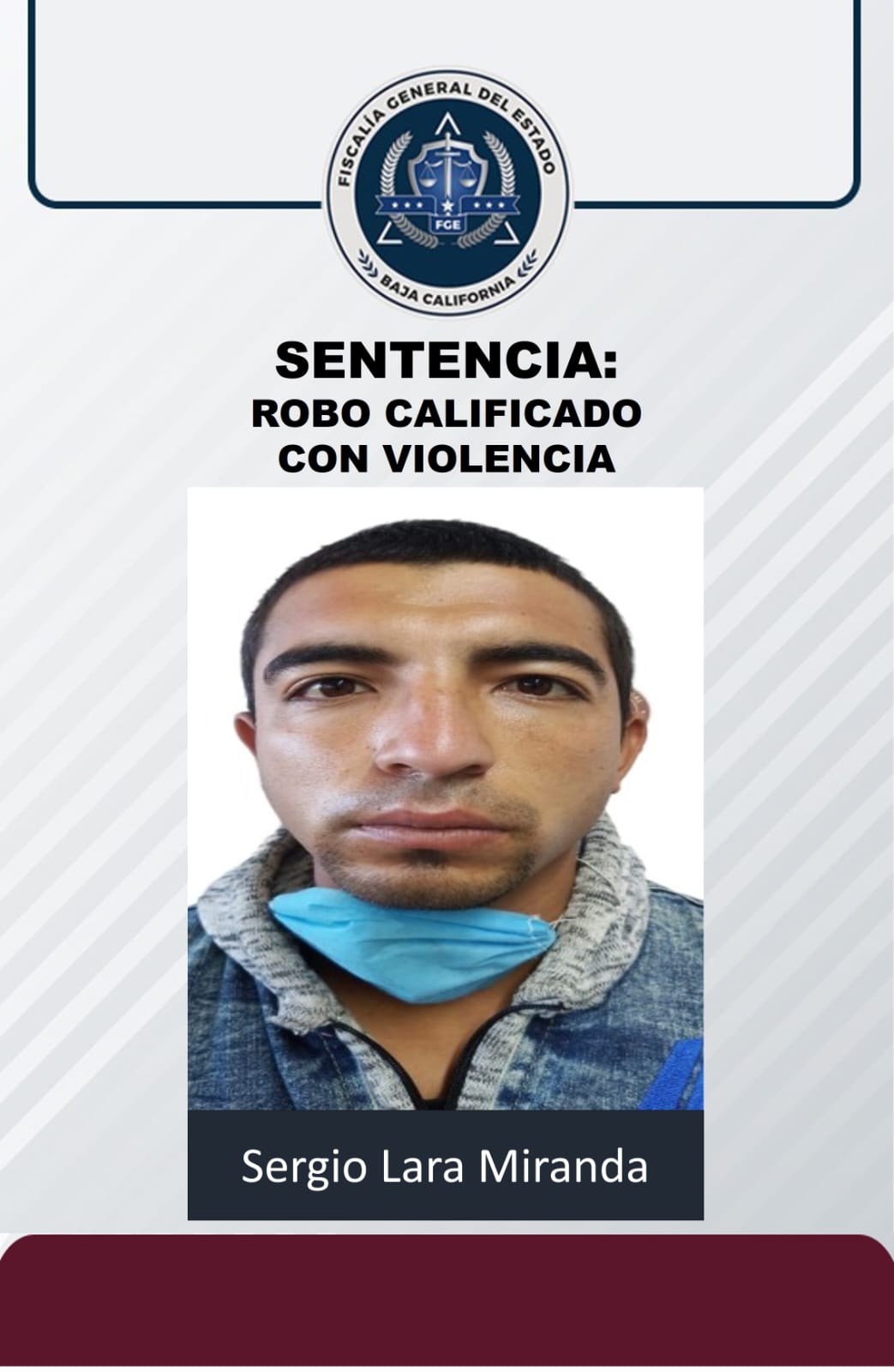 ENSENADA, B.C. La Fiscalía Regional de Ensenada, obtuvo una sentencia condenatoria de 4 años y meses de prisión contra Sergio Lara Miranda, por el delito de robo calificado ejecutado con violencia, en agravio de un chofer de una plataforma digital de transporte.