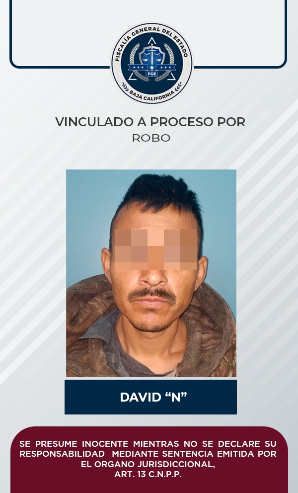 SAN FELIPE, B.C. 2023.- La Fiscalía Regional de San Felipe, logró con base a los elementos de prueba presentados, la vinculación a proceso de David “N”, presuntamente relacionado en un robo a comercio.
