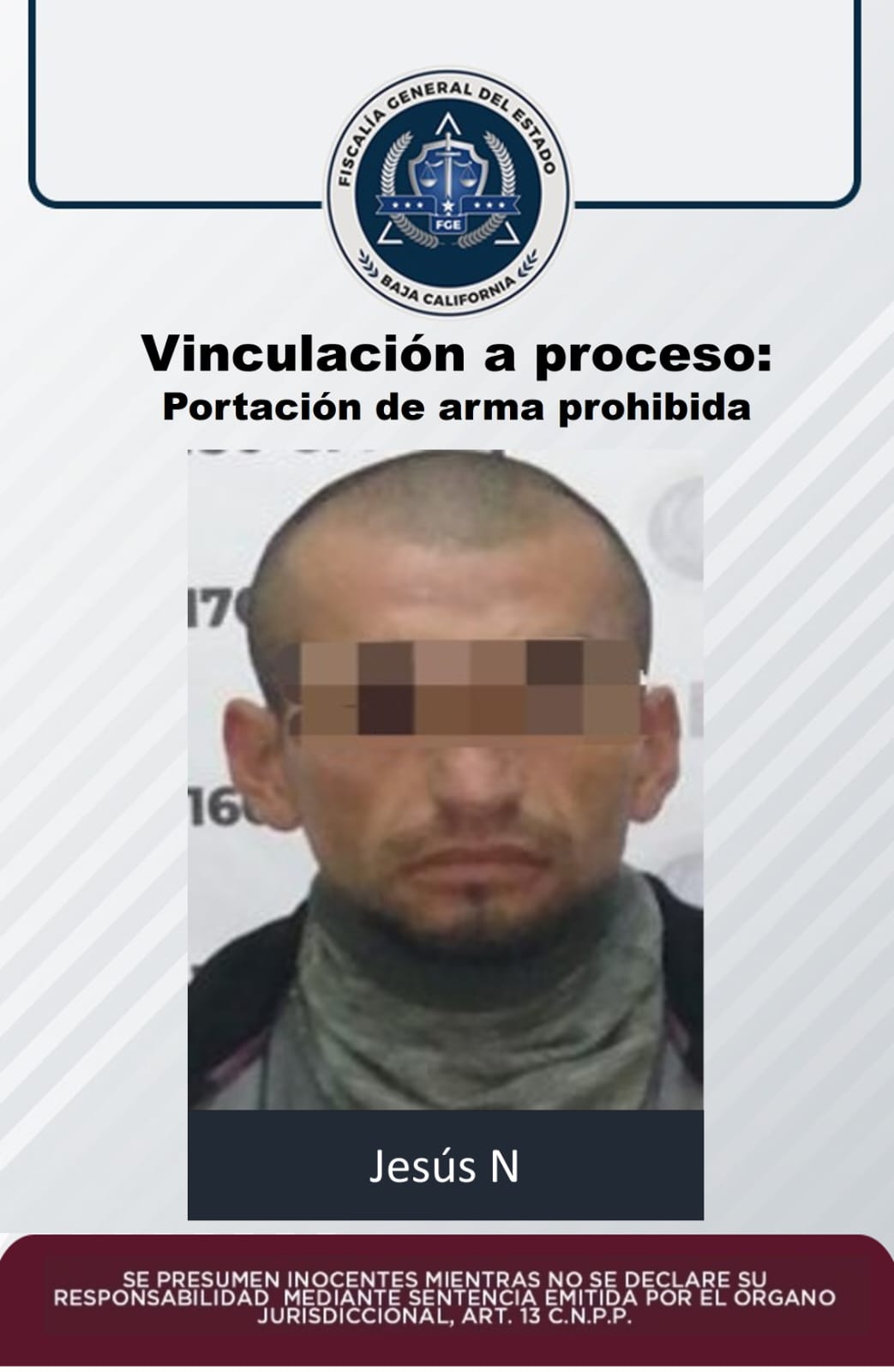 ENSENADA, B.C. La Fiscalía Regional de Ensenada, obtuvo la vinculación a proceso contra un sujeto detenido hace unos días, por el delito de portación de arma prohibida.