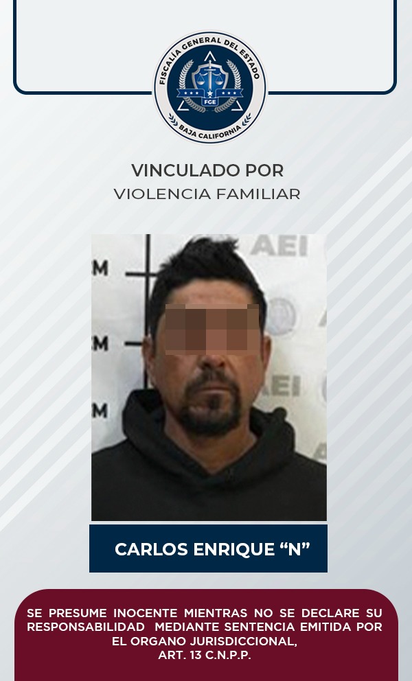 MEXICALI, B.C. Un hombre acusado del delito de violencia familiar, fue vinculado a proceso con base a las pruebas presentadas por la Fiscalía General del Estado (FGE) a través de la unidad de investigación con Detenido Poniente.