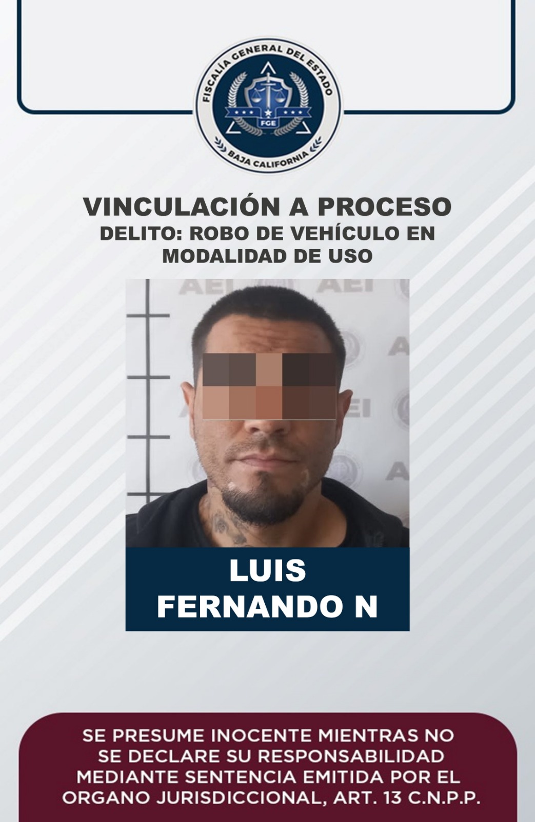 ENSENADA, B.C. Resultado de la labor realizada por la Unidad de Investigación de Robo de vehículos, de la Fiscalía Regional de Ensenada, fue posible la vinculación a proceso de Luis Fernando “N”.