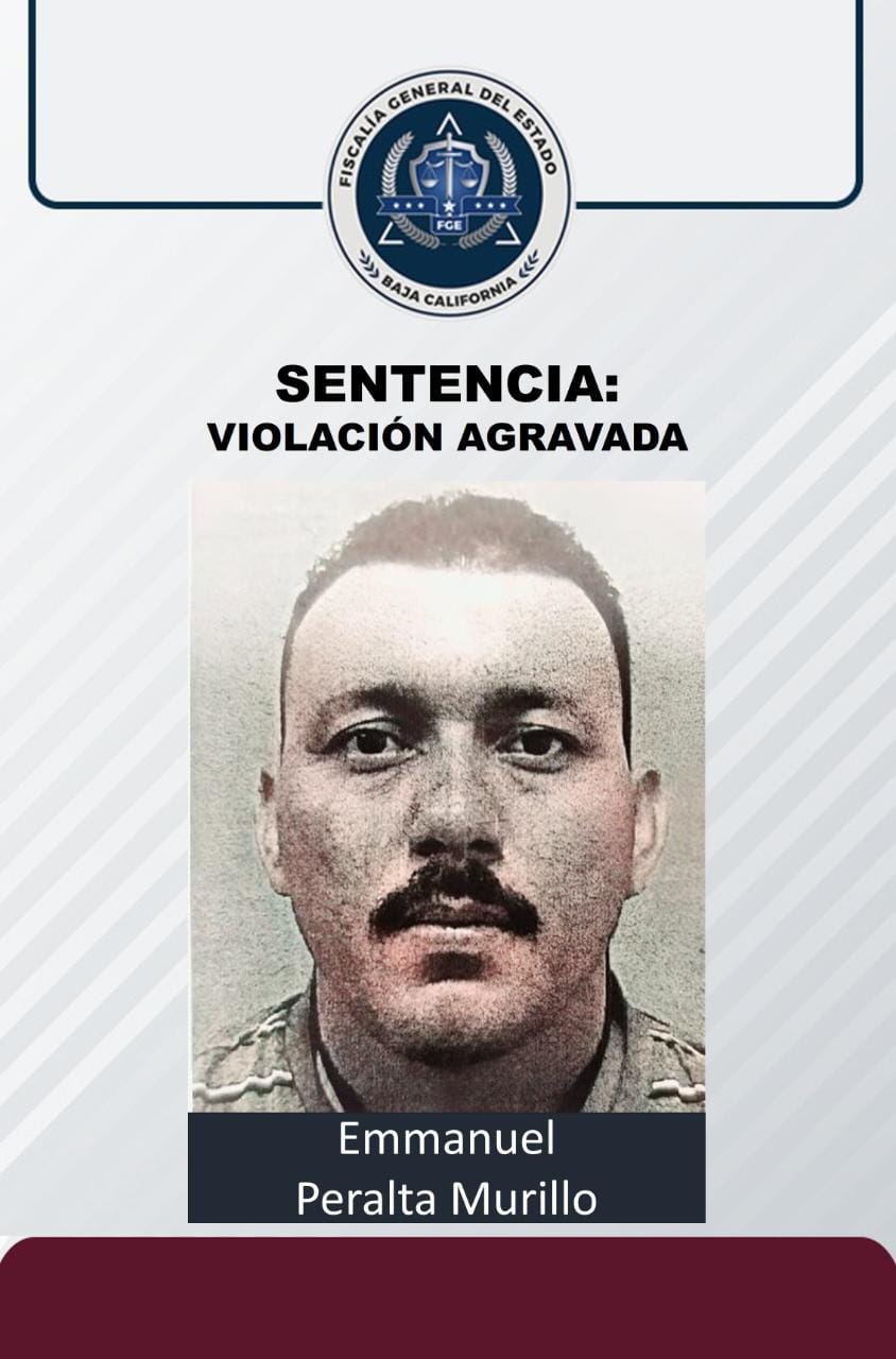ENSENADA, B.C. La Fiscalía General del Estado (FGE), obtuvo fallo condenatorio en contra de Emmanuel Peralta Murillo, quien es penalmente responsable del delito de violación agravada en razón de parentesco.