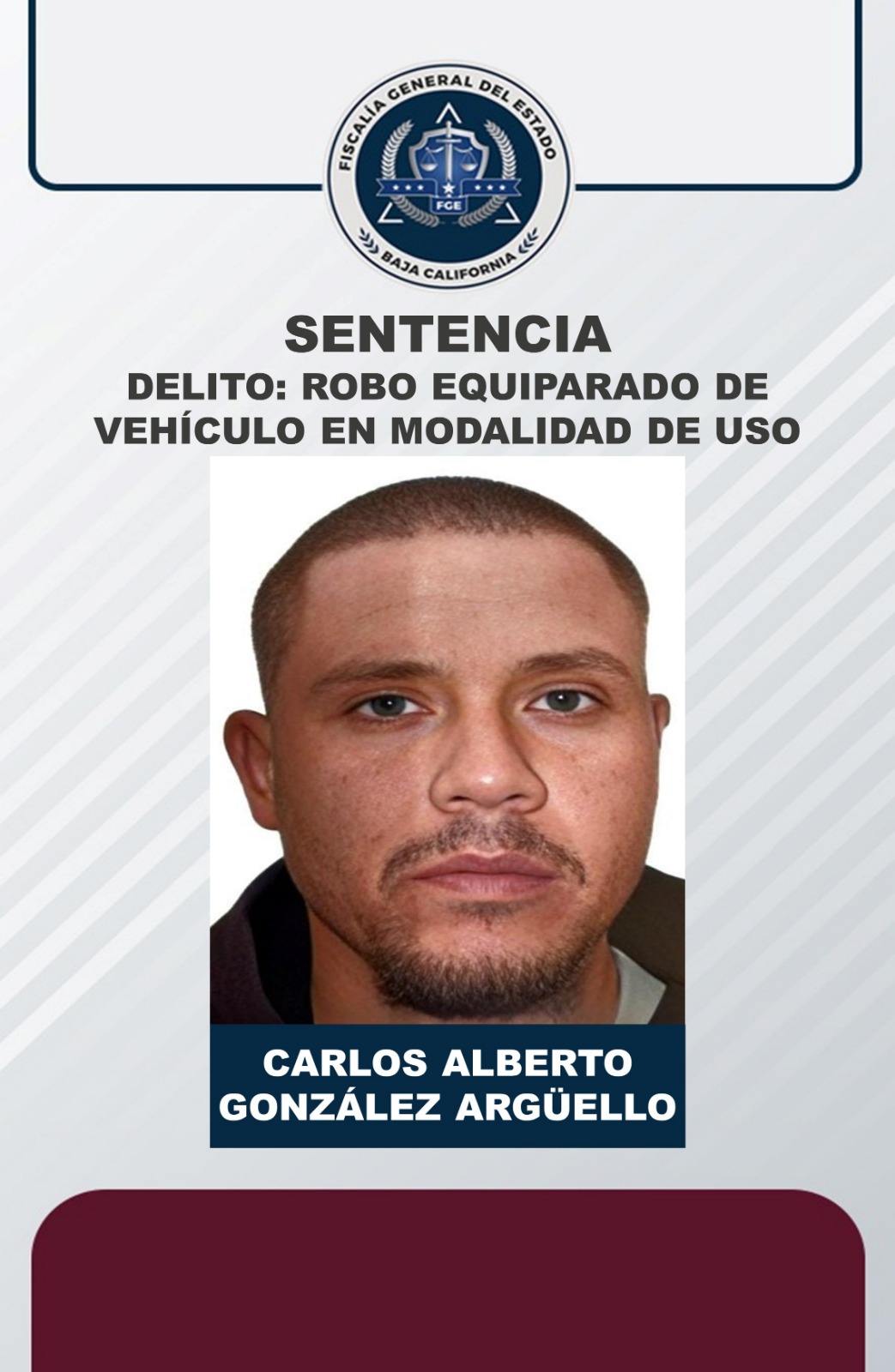 ENSENADA, B.C. La Fiscalía Regional de Ensenada logró una sentencia condenatoria en contra de Carlos Alberto González Argüello, por el delito de robo de vehículo de motor en modalidad de uso.