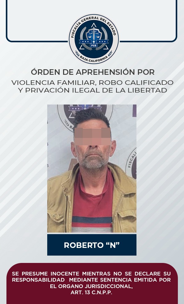 SAN FELIPE, B.C. La Fiscalía Regional de San Felipe, cumplimentó orden de aprehensión en contra de un ciudadano americano, acusado de los delitos de violencia familiar, robo calificado y privación ilegal de la libertad.