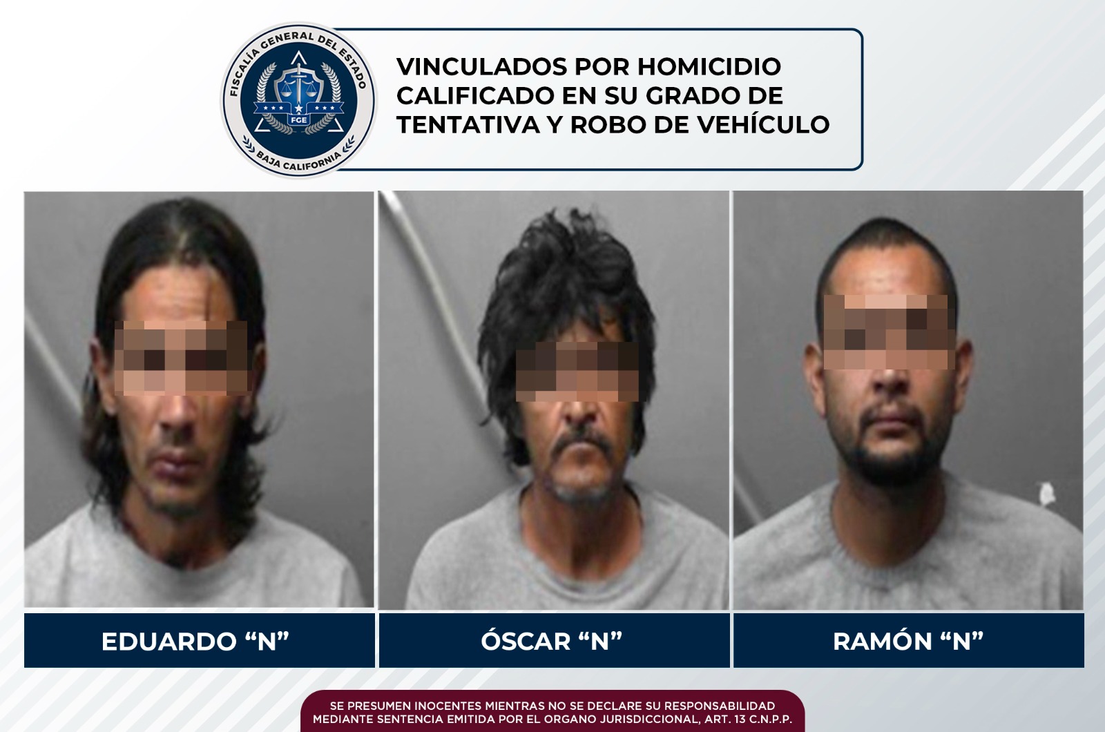 MEXICALI, B.C. Tres hombres relacionados en la agresión por disparo de arma de fuego y robo de vehículo, contra visitantes de la Laguna Salada, fueron vinculados a proceso por la Fiscalía General del Estado.