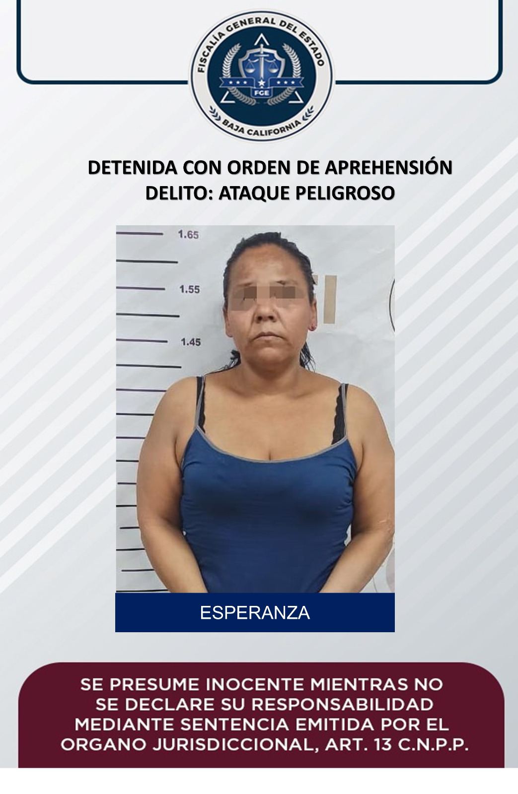 SAN FELIPE, B.C. Elementos de la Agencia Estatal de Investigación (AEI), cumplimentaron un mandamiento judicial en contra de Esperanza “N”, acusada del delito de ataque peligroso, cometido en agravio de una menor de 17 años.