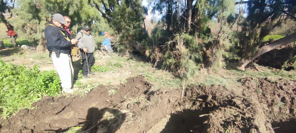 En la búsqueda efectuada en campo, los participantes revisaron el lugar y se vieron en la necesidad de utilizar maquinaria retroexcavadora (por lo difícil del acceso), lo que permitió abrir camino de tierra y llegar al punto a inspeccionar, en el cual se ejecutaron las maniobras para realizar varias zanjas; sin localizar indicio alguno.