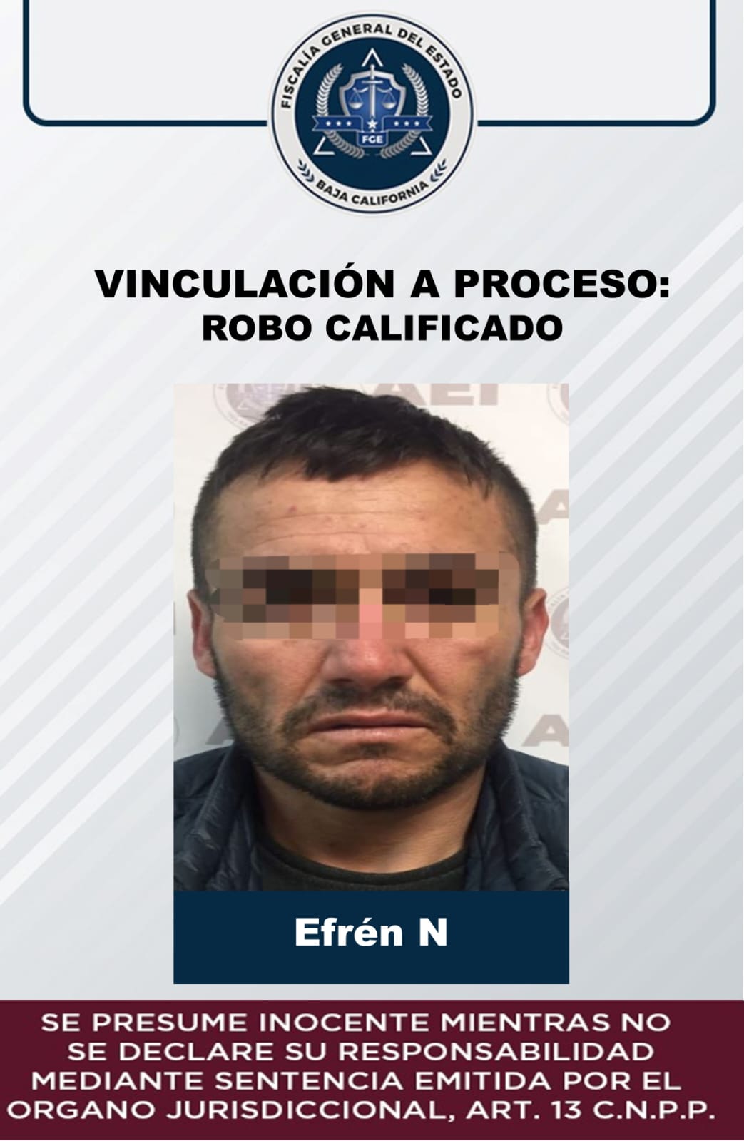 Vincula Fiscalía de San Quintín a sujeto investigado por robo calificado