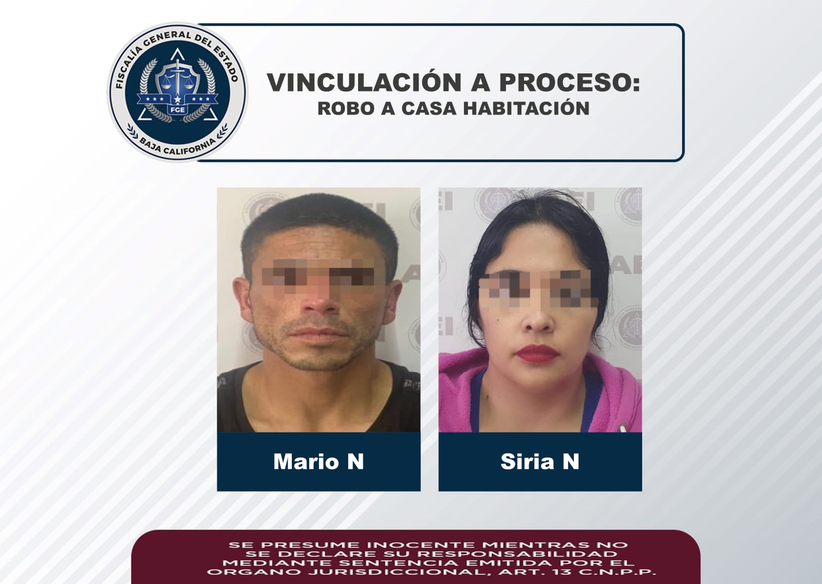 ENSENADA, B.C. La Fiscalía General del estado (FGE), inició proceso en contra de Mario “N” y Siria “N”, por su probable responsabilidad en varios robos a casa habitación; entre lo robado, se reportó un arma calibre .223 milímetros y más de 100 mil pesos en efectivo.