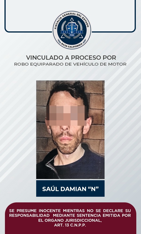 TIJUANA, B.C. Como resultado de los datos de prueba recabados por la Fiscalía Regional de Tijuana, un sujeto inició proceso penal por el delito de robo equiparado de vehículo de motor (usar vehículo de motor robado).