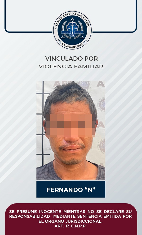 MEXICALI, B.C. La Fiscalía Regional de Mexicali, a través de la Unidad de Investigación con Detenidos Poniente, logró con base a los elementos de prueba presentados la vinculación a proceso de un hombre acusado de agredir a un familiar.