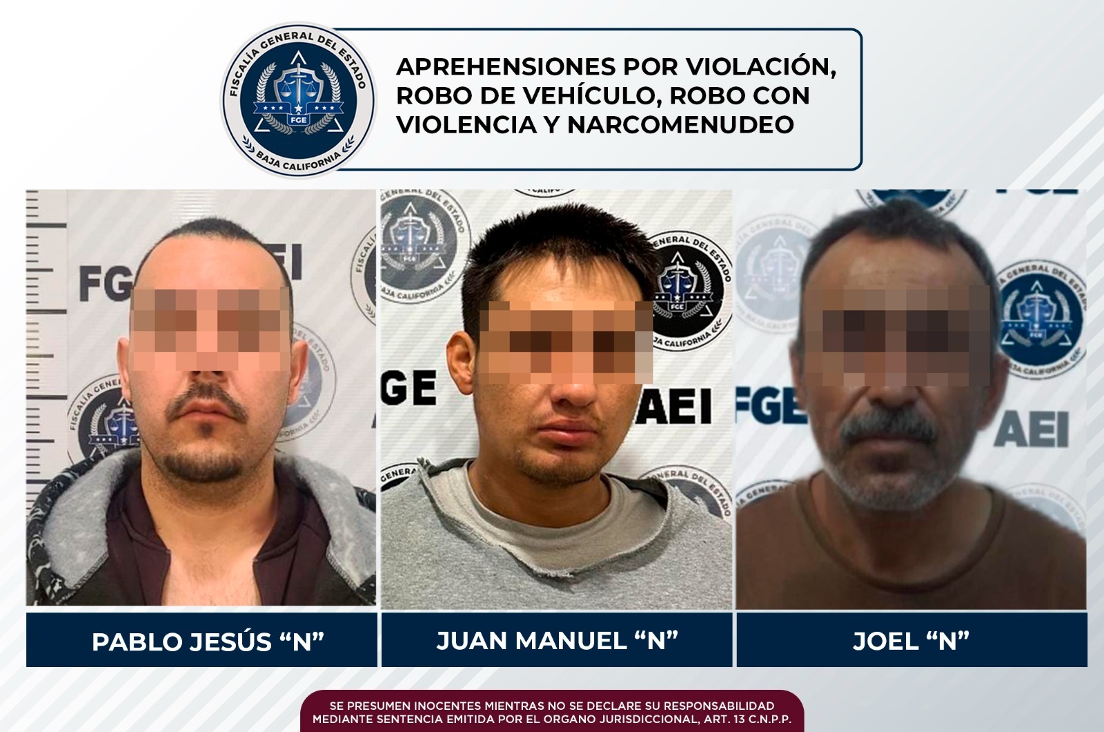 TIJUANA, B.C. La Fiscalía General del Estado, a través de elementos de la Agencia Estatal de Investigación, capturó a tres personas, quienes eran requeridas por jueces de control, por tener cuentas pendientes con la autoridad, y contar, por ello, con órdenes de aprehensión.
