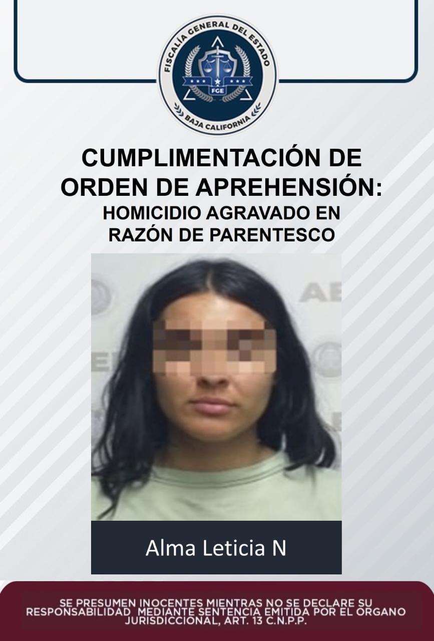 ENSENADA, B.C. La Fiscalía General del Estado (FGE), obtuvo y cumplimentó una orden judicial en contra de Alma Leticia “N”, quien se presume habría asesinado a una familiar, tras accionar un arma de fuego.