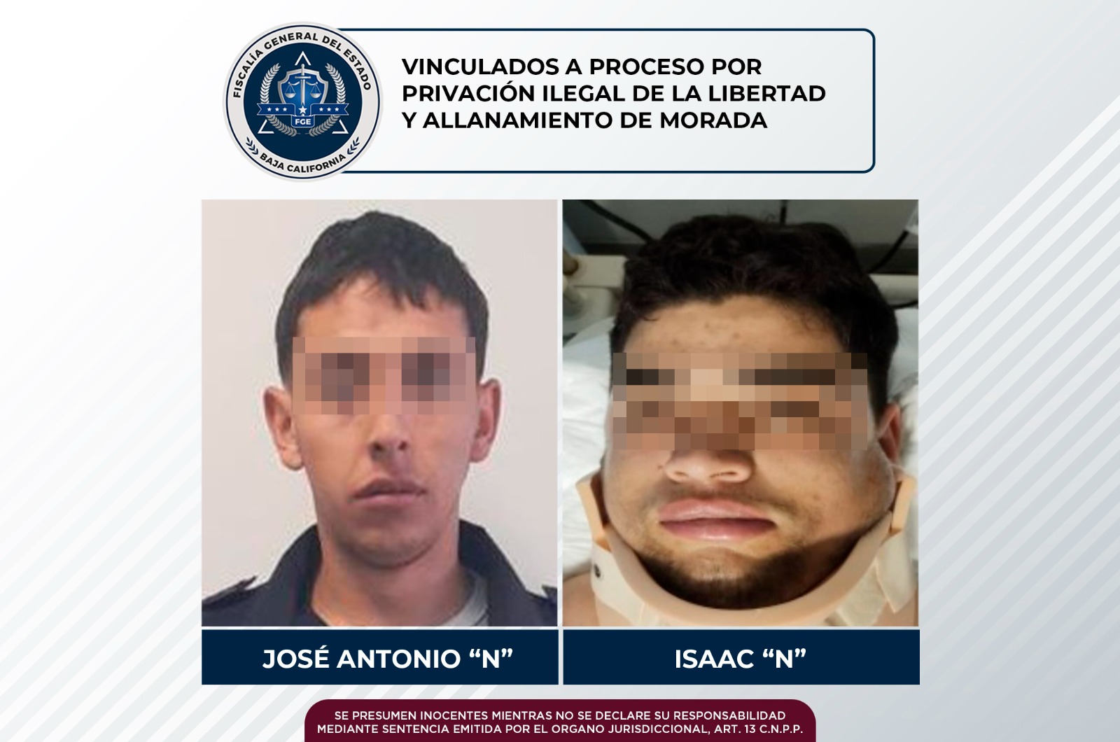Los imputados, José Antonio “N” e Isaac “N”, presuntamente participaron el pasado 3 de marzo de 2023, en la privación ilegal, y allanamiento de morada ejecutados contra una persona del sexo masculino.