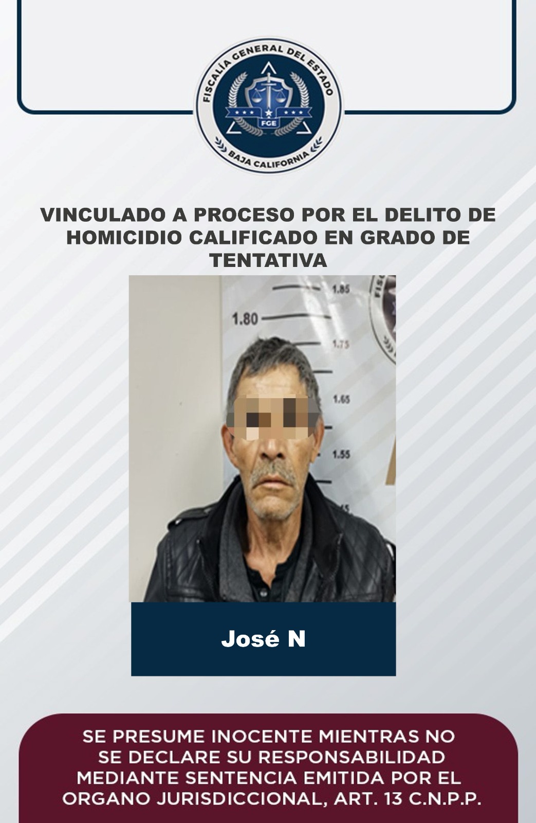 MEXICALI, B.C. La Fiscalía General del Estado, a través de la Fiscalía Especializada en Delitos Contra la Vida, logró la vinculación a proceso de José “N”, por presuntamente cometer el delito de homicidio calificado en grado de tentativa.