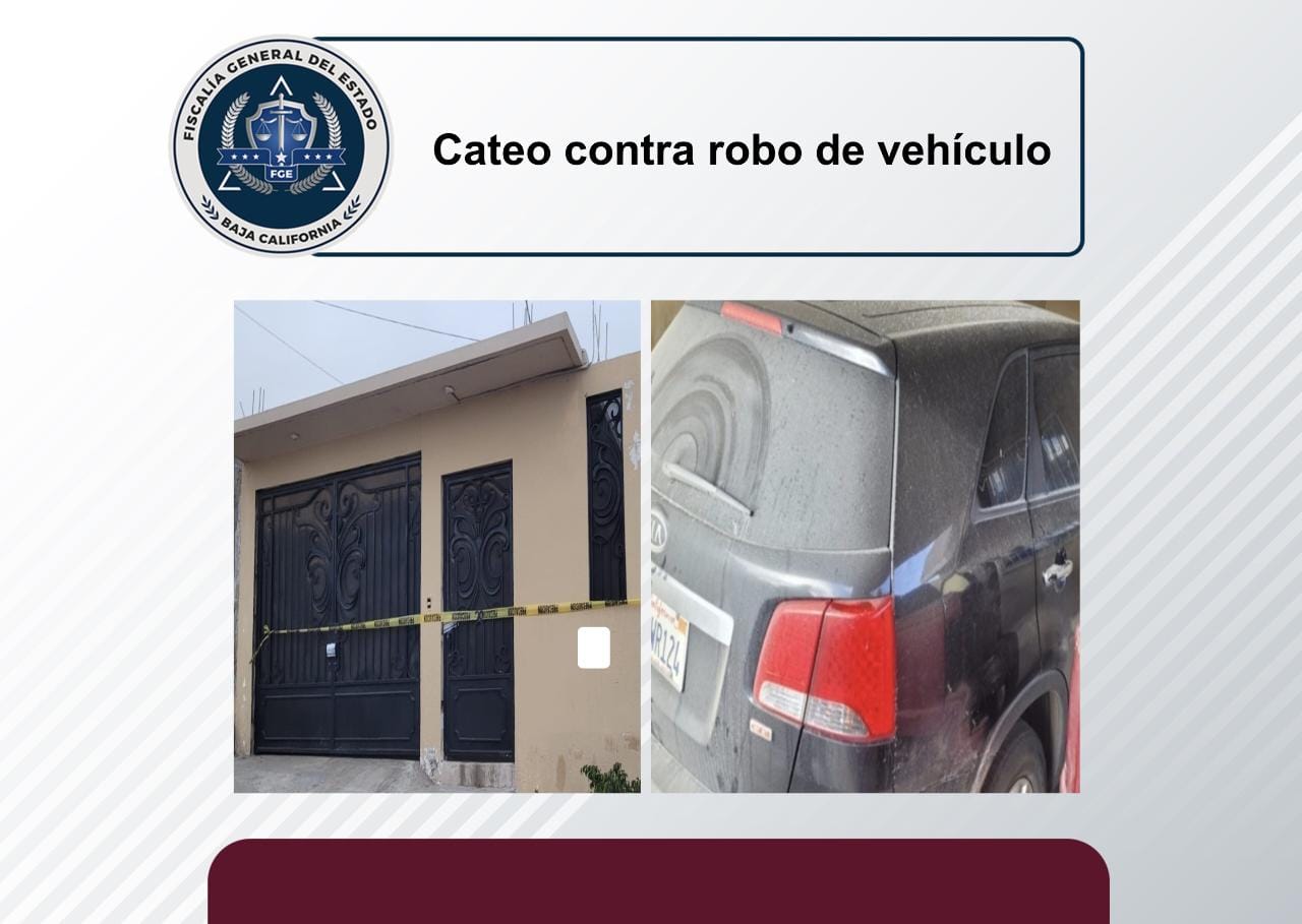 ENSENADA, B.C. Tras cumplimentar una orden de cateo en un predio ubicado en la colonia Lomitas INDECO, la Fiscalía General del Estado (FGE), aseguró un auto que contaba con reporte de robo reciente.