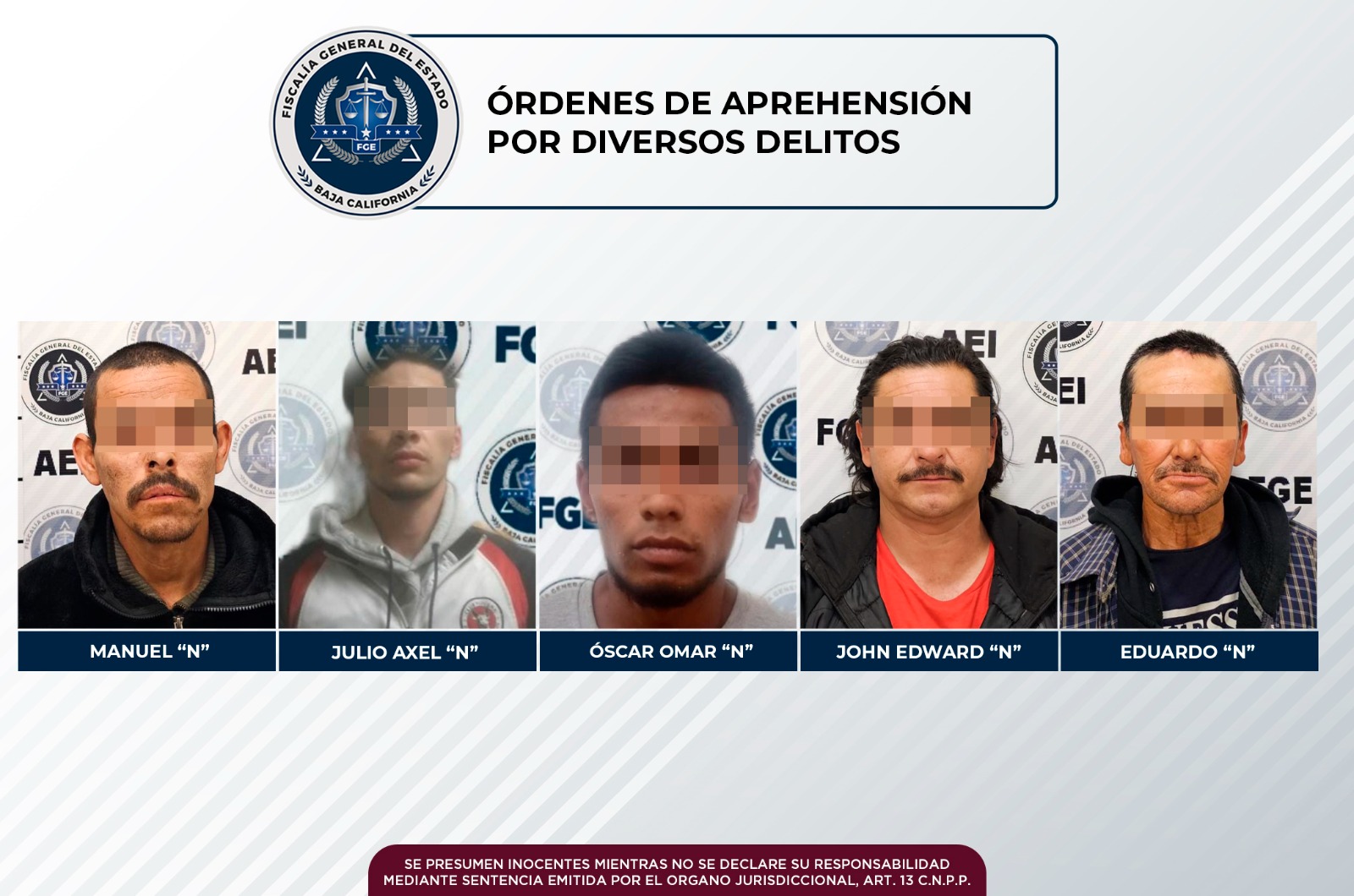 TIJUANA, B.C. Cinco personas que intentaban evadir la justicia fueron aprehendidas, en acciones distintas, por elementos de la Agencia Estatal de Investigación, quienes mediante diversas labores de inteligencia lograron cumplimentar los mandamientos judiciales en diferentes colonias de la ciudad de Tijuana.