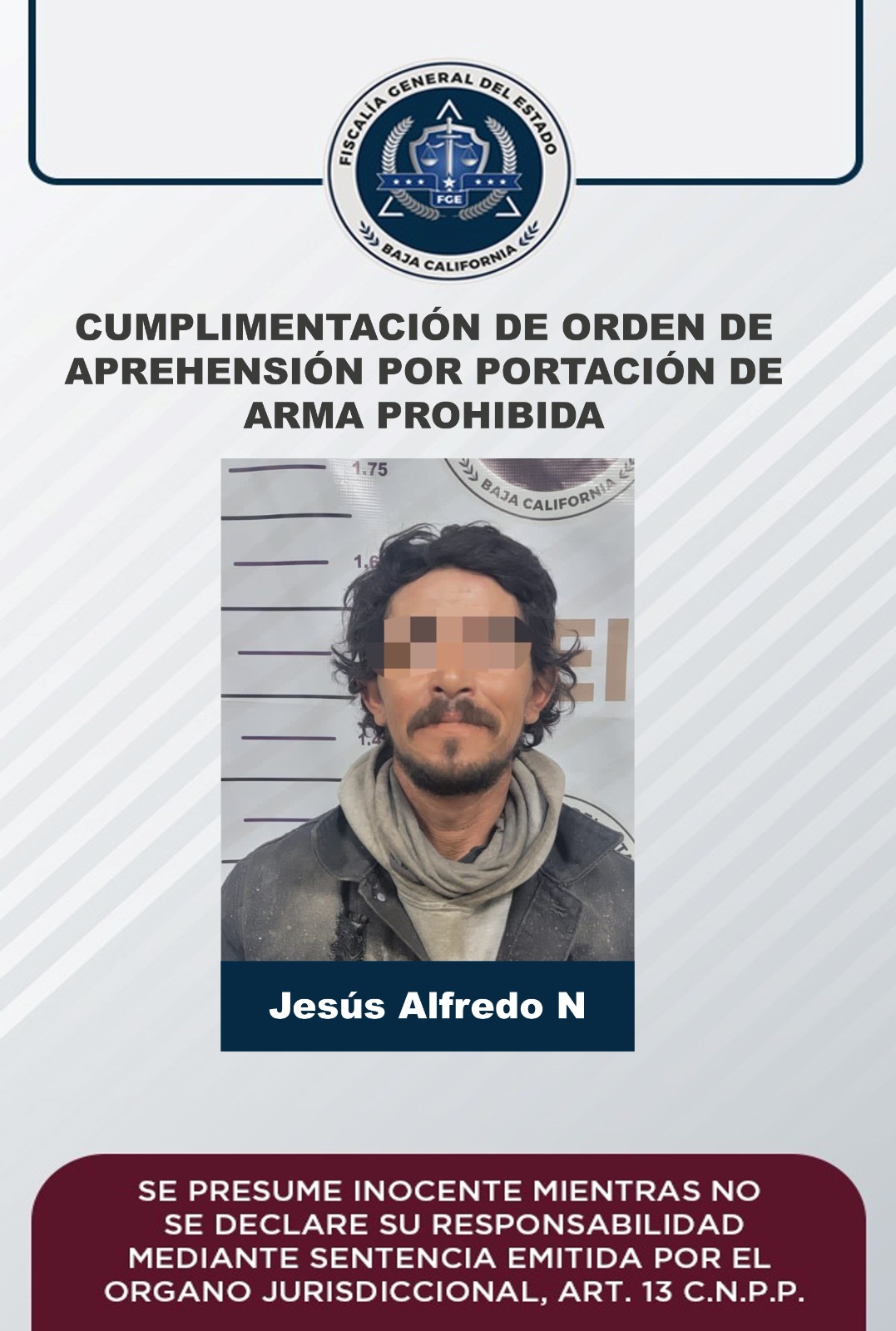 SAN FELIPE, B.C. 16 DE MARZO DE 2023.- La Fiscalía Regional de San Felipe, a través de agentes estatales de investigación, logró la captura de Jesús Alfredo “N”, por presuntamente cometer el delito de portación de arma prohibida.