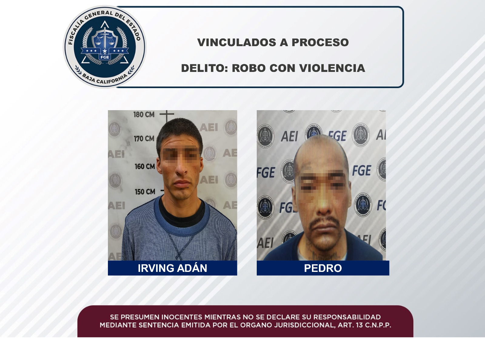 MEXICALI, B.C. La Fiscalía Regional de Mexicali, a través de la Unidad de investigación con Detenidos Poniente y Robos Poniente obtuvo con base a los elementos de prueba la vinculación de dos personas relacionadas en robos.