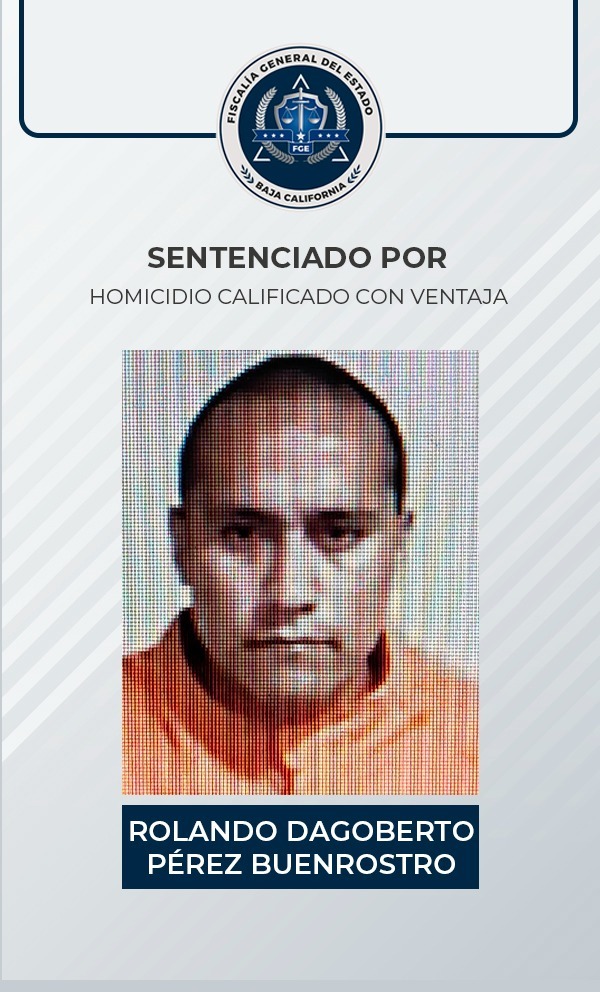 TIJUANA, B.C. En seguimiento al compromiso firme que mantiene la Fiscalía General del Estado de que los delitos no queden impunes, la Fiscalía Especializada en Delitos Contra la Vida, mediante una investigación sólida, logró una sentencia condenatoria de 30 años de prisión para Rolando Dagoberto Pérez Buenrostro, penalmente responsable del delito de homicidio calificado con ventaja.