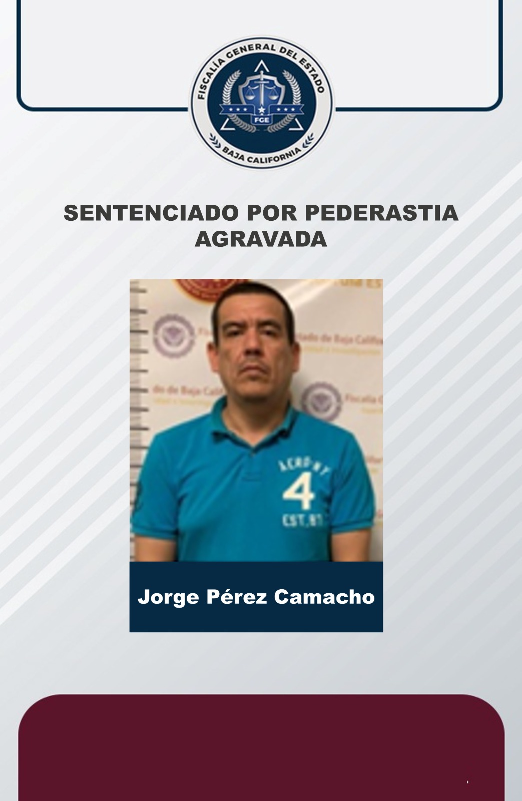 MEXICALI, B.C. 18 DE MARZO DE 2023.- La Fiscalía General del Estado, a través de la Fiscalía Especializada en Delitos Contra Mujeres por Razón de Género, logró una sentencia condenatoria en contra de Jorge Pérez Camacho, por el delito de pederastia agravada.