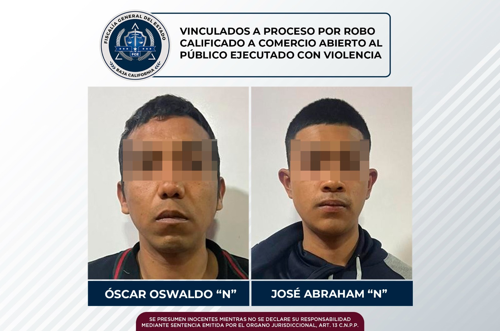 TIJUANA, B.C. Labor de investigación y pruebas sólidas presentadas por parte del Ministerio Público de la Fiscalía Regional de Tijuana ante un Juez de Control, derivó en la vinculación a proceso de dos imputados por el delito de robo calificado a comercio abierto al público ejecutado con violencia.