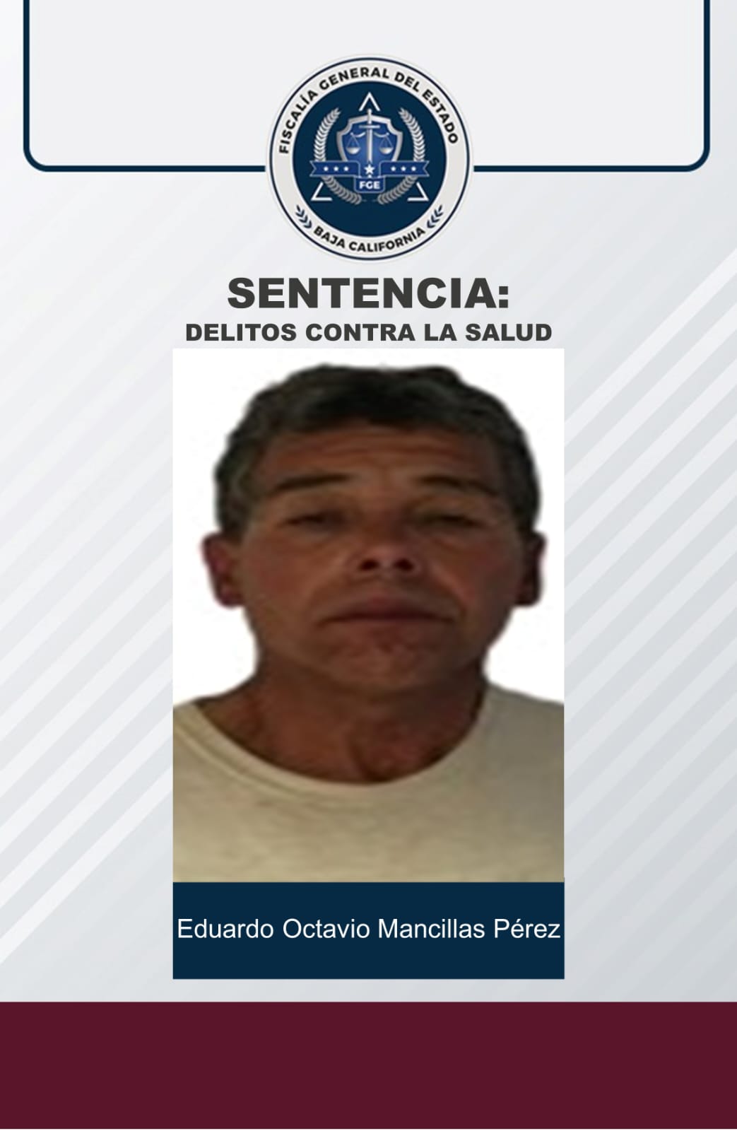 ENSENADA, B.C. Como resultado de las investigaciones y acciones penales que, la Fiscalía General de Baja California, ejerce contra quienes portan o comercializan drogas, se logró sentencia condenatoria para Eduardo Octavio Mancillas Pérez.