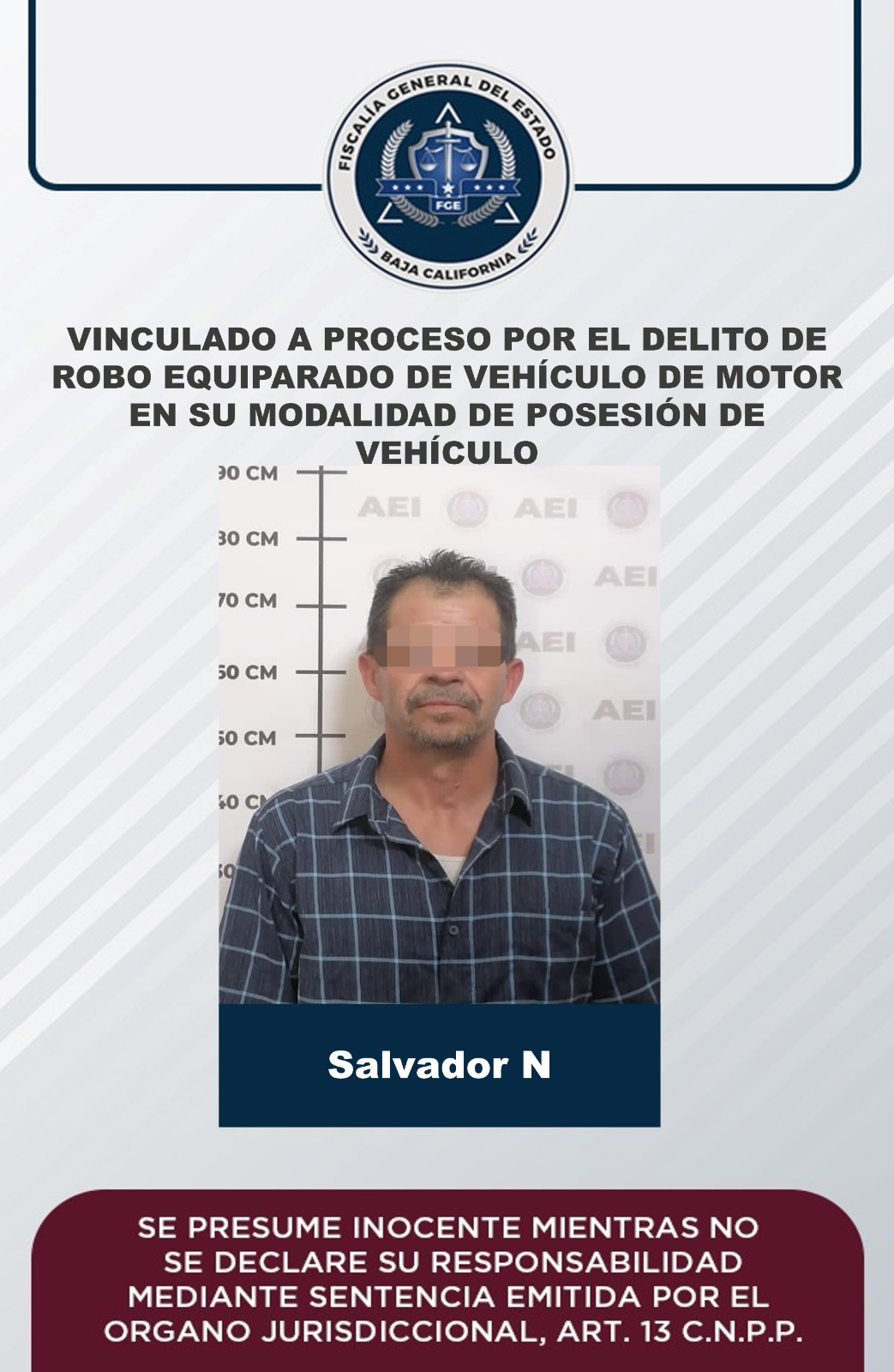 MEXICALI, B.C. La Fiscalía Regional de Mexicali a través de elementos adscritos a la Agencia Estatal de Investigación, cumplimentaron una orden de aprehensión en contra de Salvador “N”, por el delito de robo equiparado de vehículo de motor en su modalidad de posesión de vehículo de motor robado.