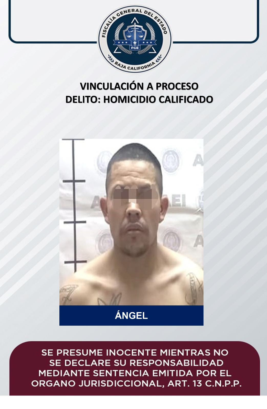 MEXICALI, B.C. La Fiscalía General del Estado FGE), a través de la Fiscalía Especializada en Delitos contra la vida, logó que el Juez iniciara proceso penal contra un hombre acusado del delito de homicidio calificado por ventaja.
