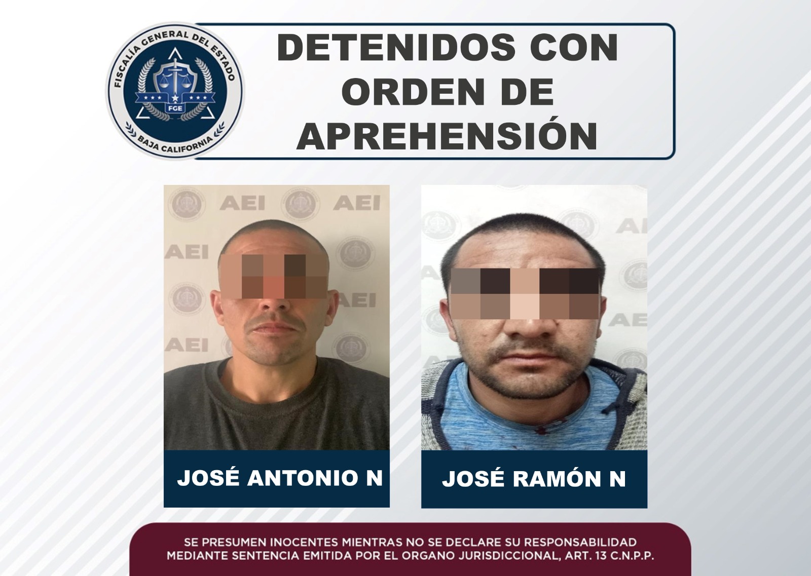 FGE cumplimentó órdenes de aprehensión contra dos sujetos en Ensenada
