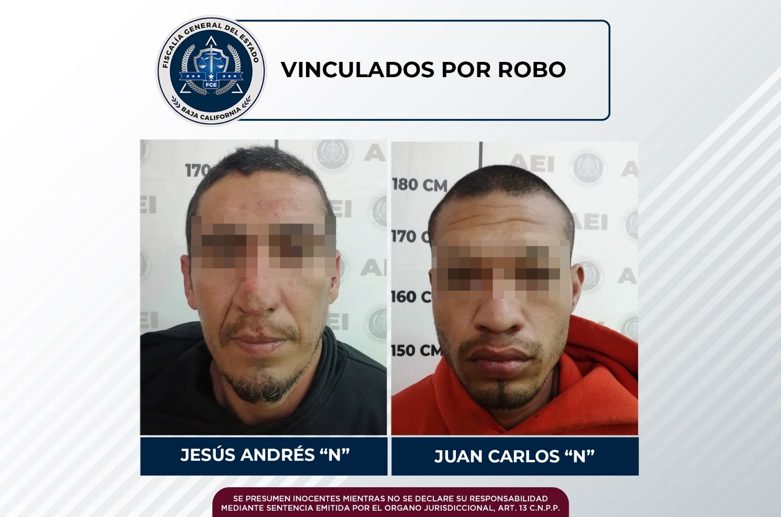 MEXICALI, B.C. La Fiscalía Regional de Mexicali, a través de la Unidad de Investigación con Detenido Oriente, logró la vinculación de dos hombres relacionados en un robo a comercio.