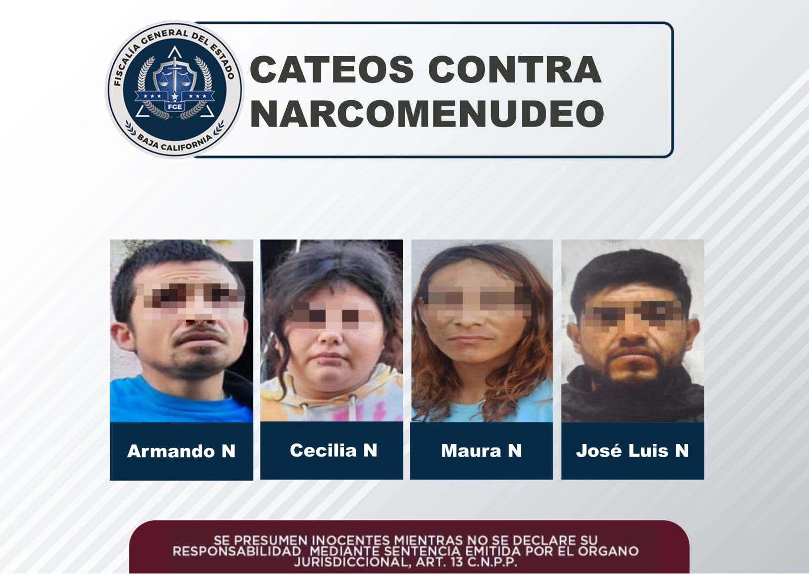 Cateos de la Fiscalía Especializada en Narcomenudeo derivan en arrestos y decomiso de narcóticos: FGE