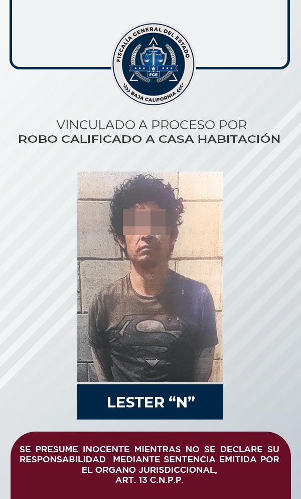 TIJUANA, B.C. 24 DE MARZO DE 2023.- Mediante elementos de prueba recabados y presentados ante la autoridad juzgadora por parte de la Fiscalía Regional de Tijuana, fue posible que un individuo iniciara proceso penal por el delito de robo calificado a casa habitación ejecutado con violencia moral.